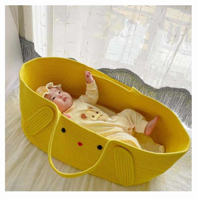 クーファン かご ベビーバスケット ベビーキャリー ベビーベッド 籠 バスケット 赤ちゃん 持ち運び コンパクト ベビー クーハン 添い寝 お昼寝 ロープ編み 折りたたみ ベビー用 赤ちゃん用 シンプル 春 北欧風 ギフト ベビー用品
