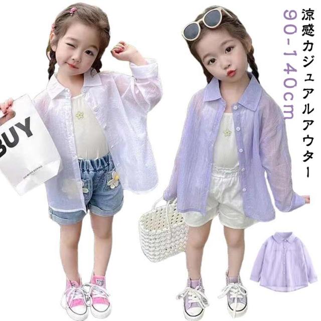 キッズ シアーシャツ 日焼け止め コート 薄手 女の子 アイスシルクサンブロックジャケット 夏用 アウトドア ベビー 男の子 女の子向け 涼感カジュアルアウター 透け感 日焼け対策 ホワイト パープル 90 100 110 120 130 140 送料無料