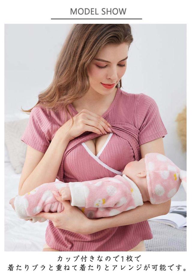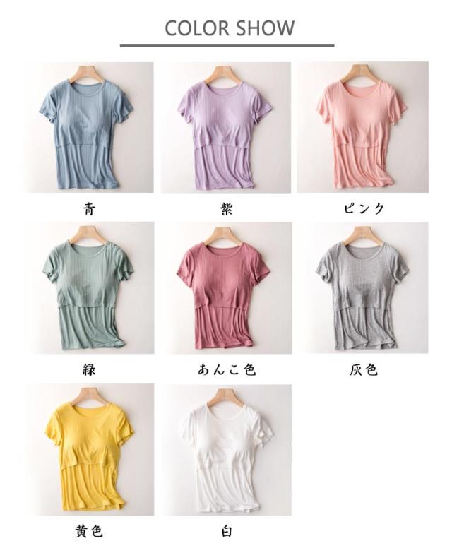 締め付けない胸パッド付き マタニティ 授乳Tシャツ 授乳口付き ブラトップ Tシャツ 半袖 カットソー 産前から産後 トップス 授乳服 春夏 秋冬 マタニティウェア トップス ラウンドネック パジャマ ルームウェア お出掛け ブラジャー 通気性 速乾 ストレッチ