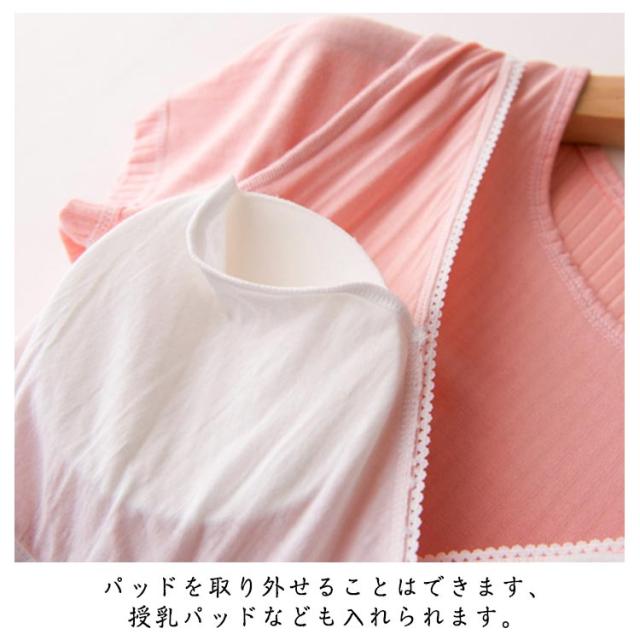 | 前開きタイプの授乳口付きで、サッと授乳が可能。 ふんわり柔らかい生地は産前の敏感肌にも優しく、通気性も抜群で夏でも快適。 程よく伸縮性があり、体のラインを拾いすぎないのでリラックスウェアにもぴったり。 出産準備や入院用、母の日のギフトにもおすすめのアイテムです。 カップ付きなので1枚で着たりブラと重ねて着たりとアレンジが可能です。 パッドを取り外せることはできます、授乳パッドなども入れられます。 | |