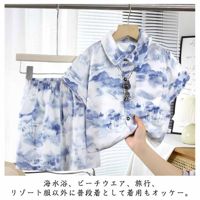 アロハシャツ 上下セット シャツ 半袖 ショートパンツ 子供服 ダンス 衣装 キッズ 幼児服 可愛い 半袖シャツ 男の子 ハワイ風 ビーチウェア 総柄 ビーチシャツ リゾート 花柄シャツ ベビー服 夏 旅行 おしゃれ 海 カジュアルシャツ