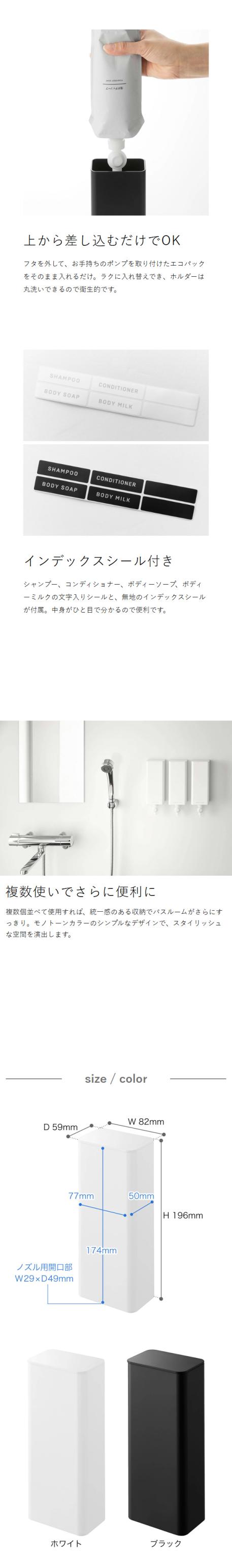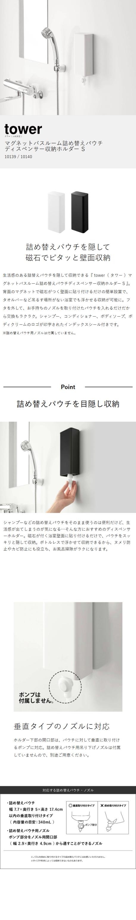 [ マグネットバスルーム詰め替えパウチディスペンサー収納ホルダー タワー S ]山崎実業 tower シャンプー 詰め替え 吊り下げ ディスペンサー そのまま ホルダー ケース おしゃれ yamazaki 公式 ブラック ホワイト 10139 10140