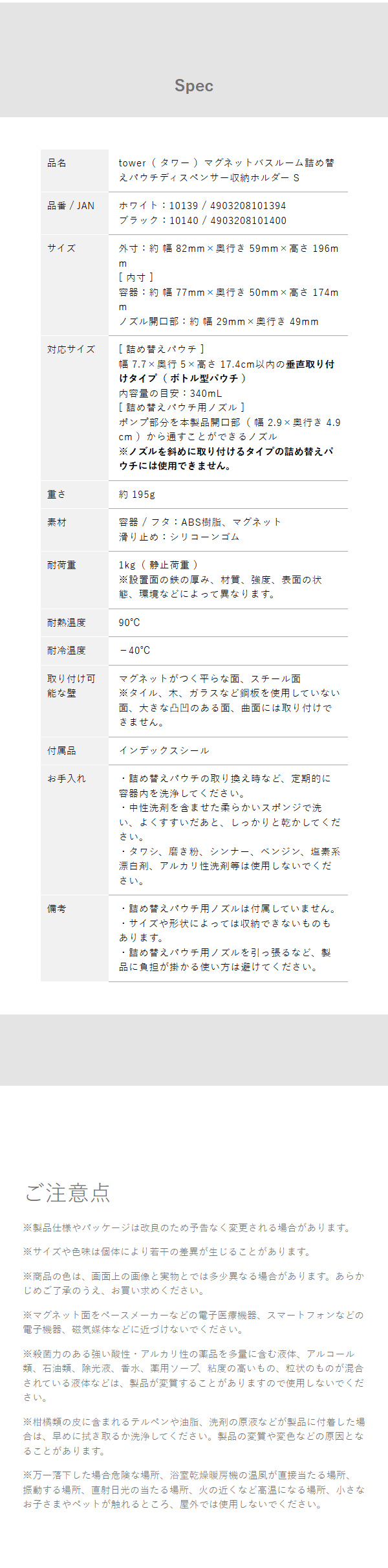■ マグネットバスルーム詰め替えパウチディスペンサー収納ホルダー タワー S 10139 10140