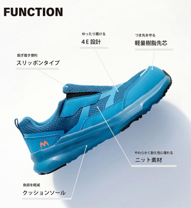 22.5〜30.0cmの広いサイズレンジと豊富なカラーバリエーションが魅力のこのシューズは、ユニフォームや企業カラーに合わせてご利用いただきやすい一足です。樹脂製先芯入り