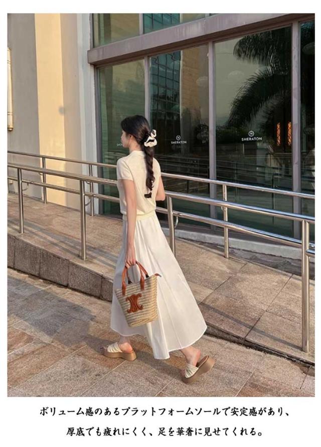 | ミュールサンダル大人美脚目を引くビッグリボンが今年らしいサンダル 涼しげな厚底デザインが大人リラックス感を醸し出すサボサンダル。 ボリューム感のあるプラットフォームソールで安定感があり、厚底でも疲れにくく、足を華奢に見せてくれる。 シンプルなのでコーディネートしやすく、一気にトレンド感が出せるおすすめアイテムです。 カジュアルなデニムスタイルからフェミニンなワンピースまで幅広いコーディネートに合わせやすい一足 | |