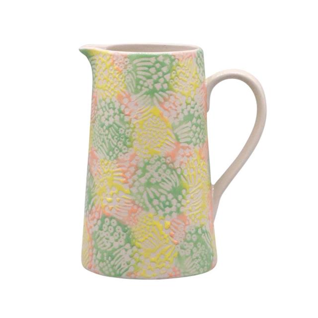 懐かしさを感じるレトロな柄が可愛いフラワーベースです。表面に凹凸のあるデザインがほっこりとした雰囲気を演出します。生花を活けるのはもちろん、オブジェのように置いているだけでも様になるアイテムです。職人が1つ1つ手作りで仕上げた、ぬくもりのある表情が魅力的です。