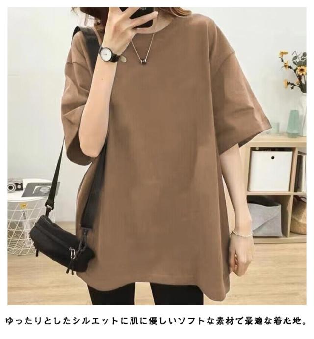 体型カバー レディース ラウンドネック 半袖 夏 夏Tシャツ Tシャツ 半袖Tシャツ ギフト 無地 ゆったり ビッグシルエット 可愛い 個性的 快適 柔らかい ゆったり カジュアル ファッション カットソー サマーTシャツ 大きいサイズ 着?せ ママ 母 母の日 無地Tシャツ