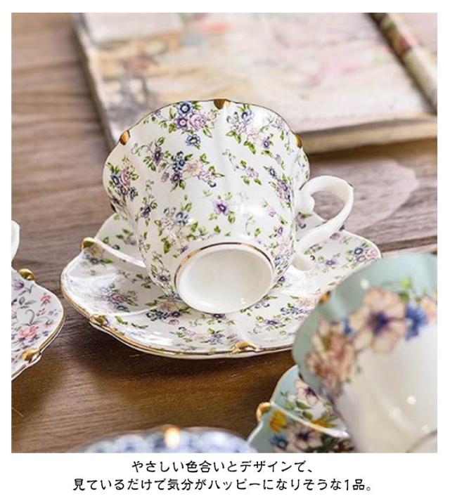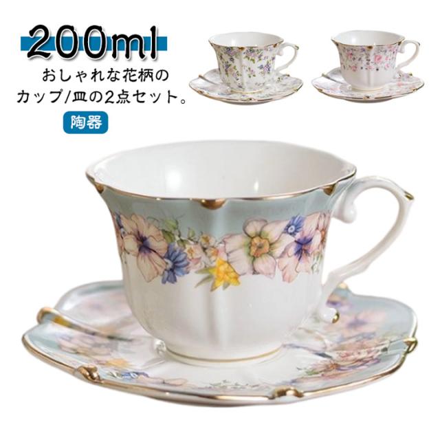 コーヒーカップ ソーサー セット 花柄 フラワー 陶器 200ml マグカップ ティーカップ レトロ 高級感 おしゃれ かわいい マグ カップ 皿 サラ 珈琲カップ カフェ 北欧 珈琲 コーヒー 食器 ツヤ 洋風 和風 碗皿 食洗機対応 引っ越し