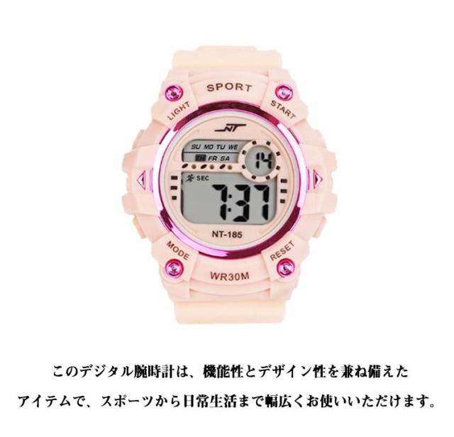 夜光 デジタル腕時計 高校生 中学生 腕時計 デジタル レディース 子供 メンズ キッズ 小学生 大人 アラーム 防水 ベルト スポーツ 文字が見やすい スポーツウォッチ ストップウォッチ ブラック シンプル ライト ホワイト 黒 白