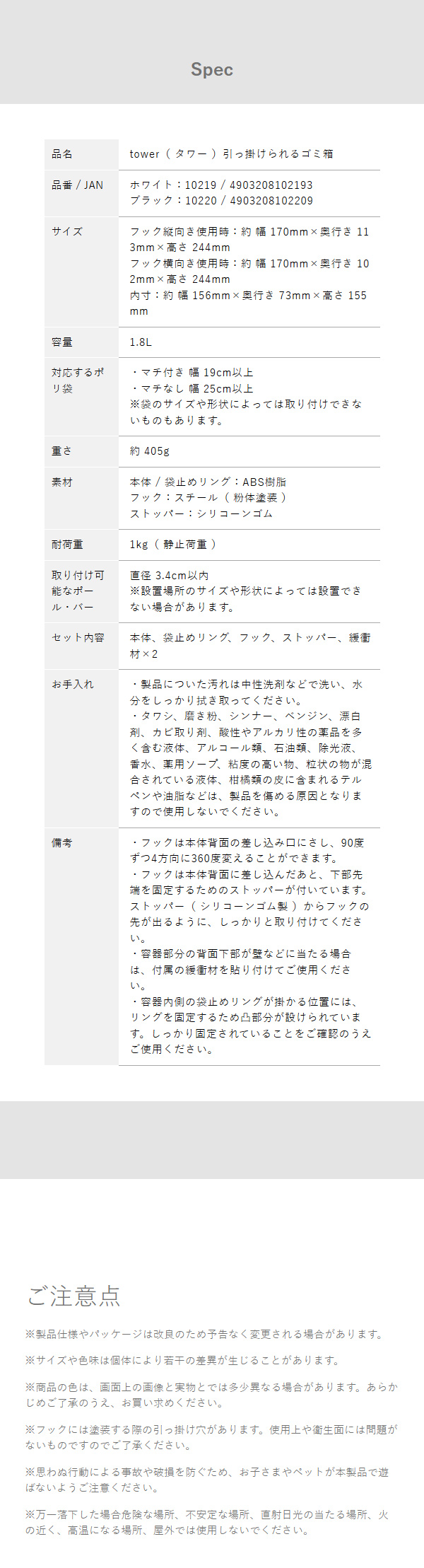 ■ tower 引っ掛けられるゴミ箱 10219 10220