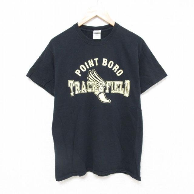 古着 半袖 ビンテージ Tシャツ メンズ 00年代 00s トラックフィールドコットン クルーネック 黒 ブラック Mサイズ 中古 中古 古着