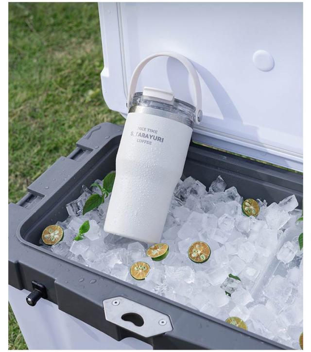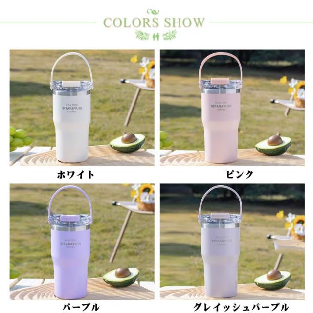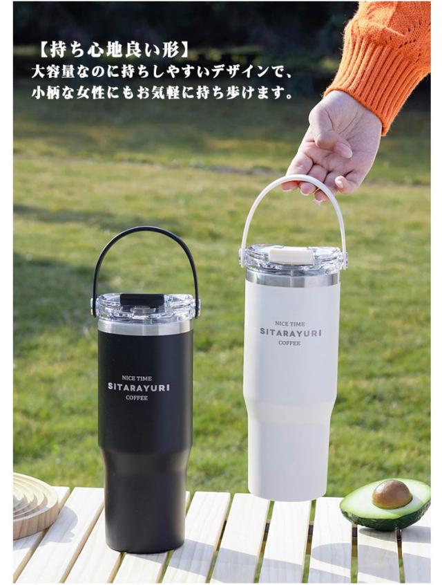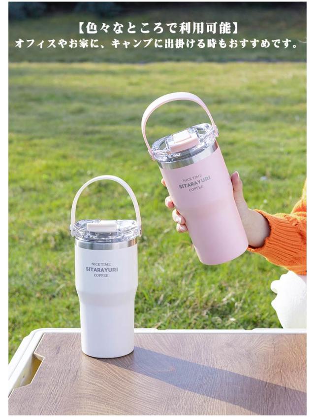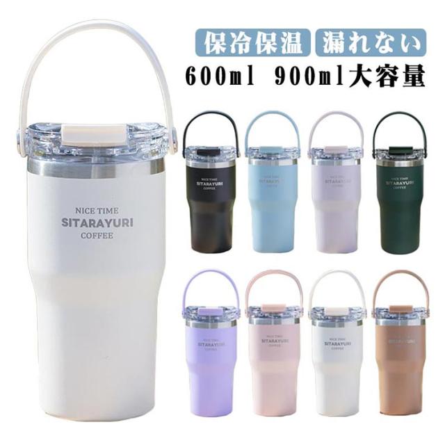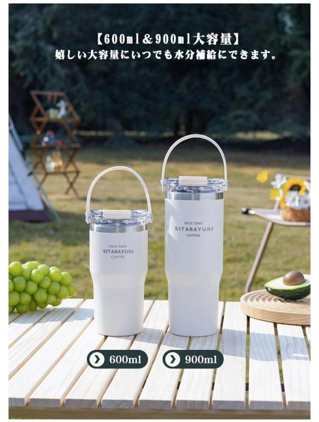 こぼれない ホルダー付き 保冷 水筒 持ち運び キャンプ ストロー タンブラー ストロー付き タンブラー ハンドル付き 600ml コーヒー 保温 おしゃれ 900ml 大容量 ステンレス マグ ジョッキ 2way 密閉 かわいい 広口 洗いやすい