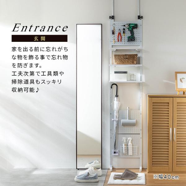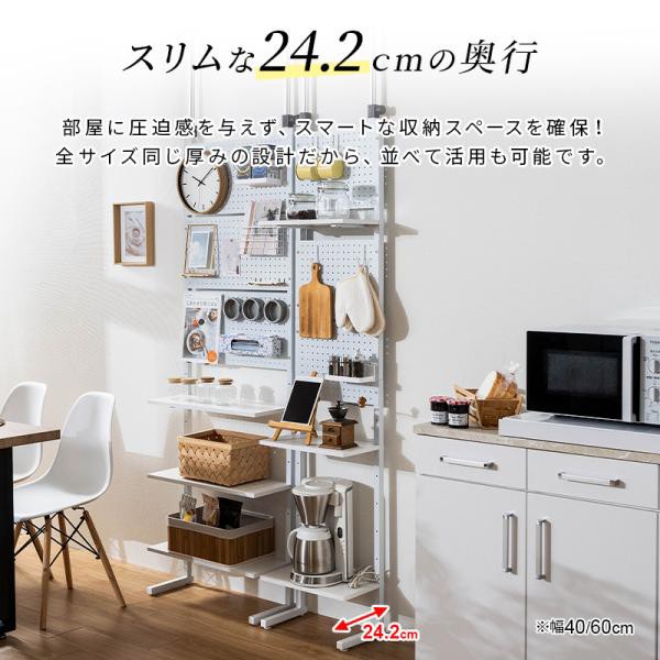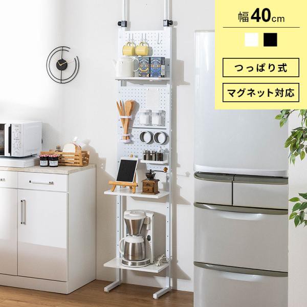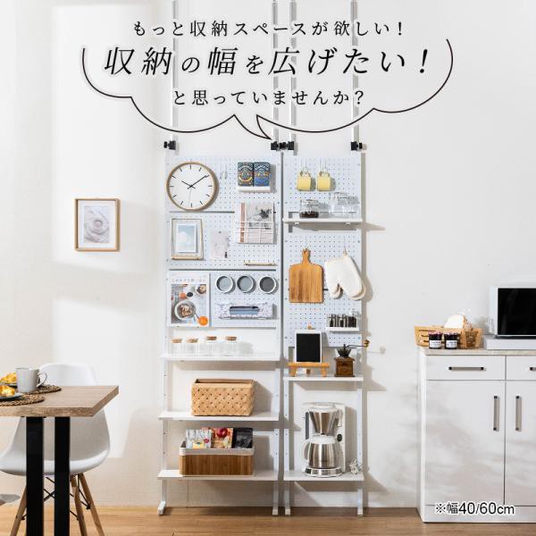 壁面収納 突っ張り つっぱり 壁 ラック 幅40 パンチングボード 有孔ボード パンチング スチールラック キッチン ダイニング 玄関 スリム リビング
