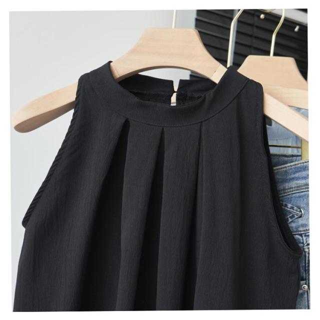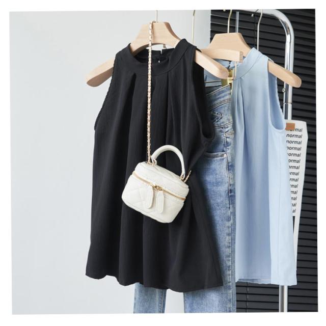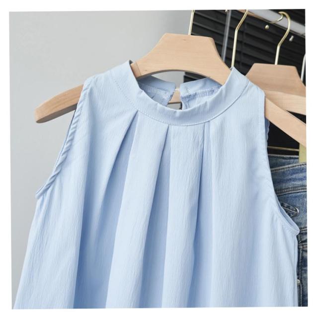着やせ トップス レディース シャツ 夏 ホルターネック Aライン ブラウス タック 薄手 シャツ タンクトップ カジュアル ノースリーブブラウス 袖なし 体型カバー ハイネック 可愛い フォーマル 卒業式
