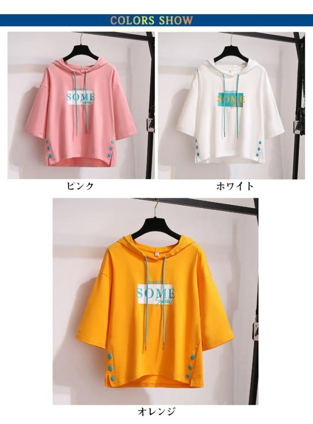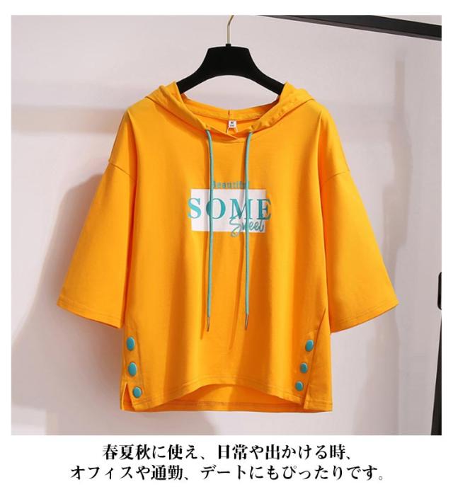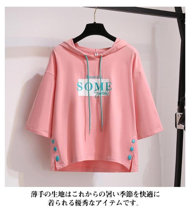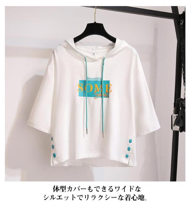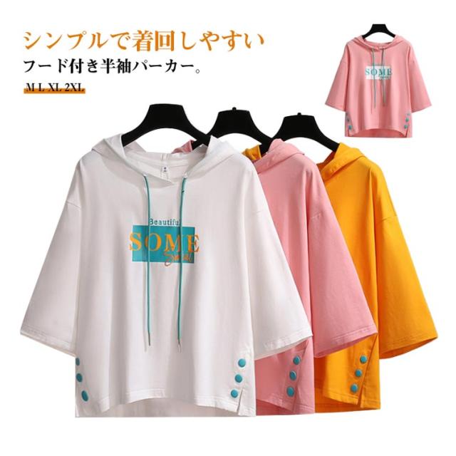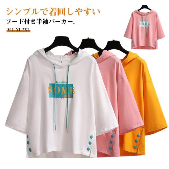 半袖パーカー Tシャツ フード付き フード付き レディース ゆったり カットソー 夏服 薄手 スウェット トップス プルオーバー ビッグシルエット 着痩せ きれいめ 大きいサイズ
