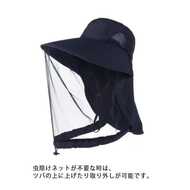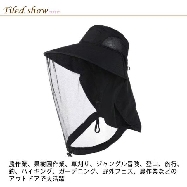 | 虫よけ・紫外線対策 UVカット 撥水加工 吸汗通気 農作業、果樹園作業、草刈り、ジャングル冒険、登山、旅行、釣、ハイキング、ガーデニング、野外フェス、農作業などのアウトドアで大活躍 虫除けネットが不要な時は、ツバの上に上げたり取り外しが可能です。 帽子の裏にはメッシュ素材を採用しておりますので、通気性もバッチリで速乾性もございます。 | |