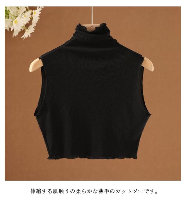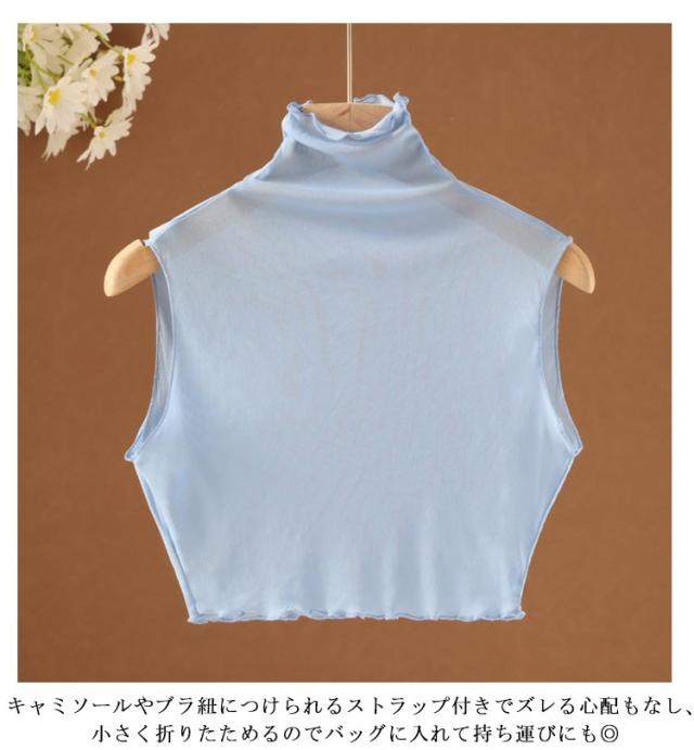 カットソー 紫外線対策 つけえり 夏 薄手 ハイネック レディース つけ襟 トップス シースルー 涼しい 付け襟 無地 インナー レイヤード 女性 カバー ネックウォーマー シンプル 冷房対策 エアコン 冷え対策 ノースリーブ シアー ハイネック 春 通学 通勤