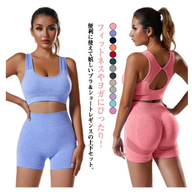 カップ付 スポーツブラ ウェア ショートレギンス セットアップ 体系カバー レデイーズ ピラティス ヨガ 上下セット ショートパンツ カップ付き 室内用 フィットネスウェア ヨガウェア 可愛い スポーツウェア トレーニングウェア