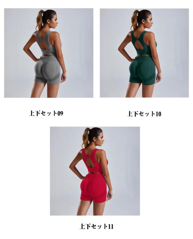 | フィットネスやヨガにぴったり! 便利に使えて嬉しいブラ&ショートレギンスの上下セット。 スポーツ中だってファッショナブルにキメて楽しみましょう! 吸汗速乾/ストレッチ | |