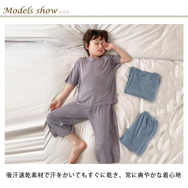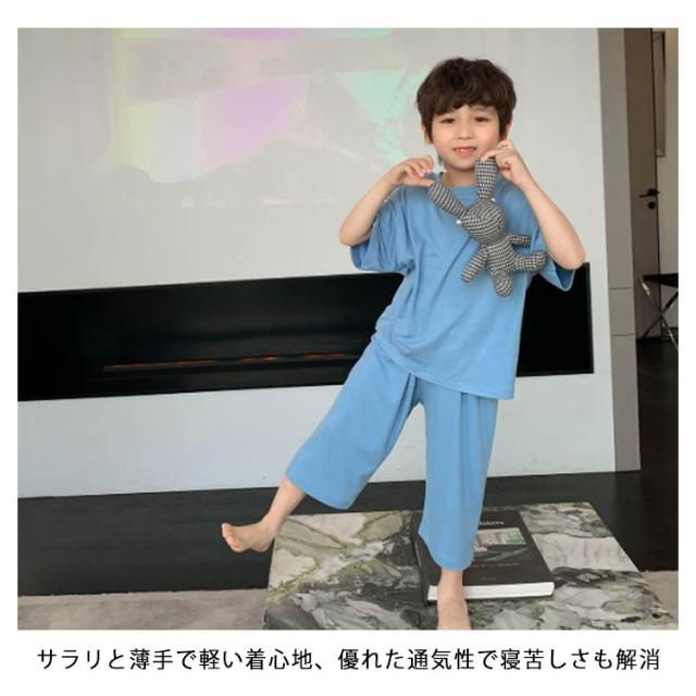 | キッズ パジャマ 夏用ルームウェア 110-160cm 吸汗速乾素材で汗をかいてもすぐに乾き、常に爽やかな着心地 サラリと薄手で軽い着心地、優れた通気性で寝苦しさも解消 パンツはウエスト総ゴムで着脱がラク | |