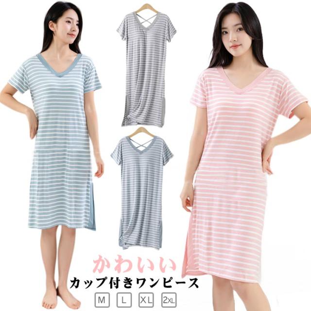 ルームウェア パット付き 夏 ワンピース 部屋着 カップ付き パジャマ 湯上がり トラベルパジャマ レディース ルームウェア モダール 半袖 膝丈 かわいい カップ付きワンピース ミドル丈ワンピース ネグリジェ 半袖 ワンピ 寝巻き 大きいサイズ