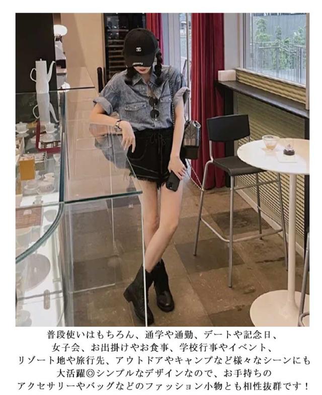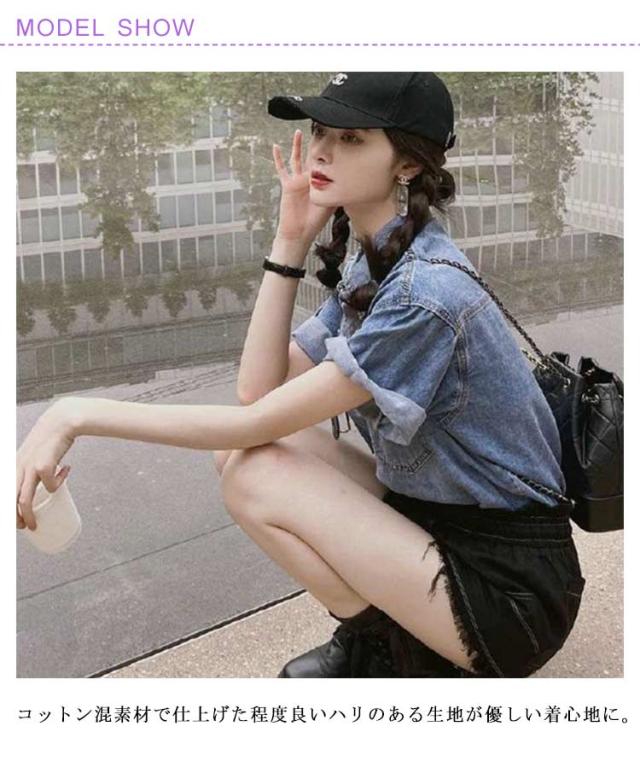 前開き ブラウス 半袖 春夏 シャツ カジュアル 五分袖 デニム トップス 普段着 可愛い きれいめ シンプル 春 大人 ゆったり デニムシャツ デニムブラウス 夏 秋 ブルー お出かけ 通勤 通学 無地 デート おしゃれ デニムシャツ 20代 30代