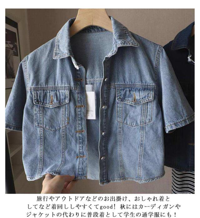デニムジャケット アウター OL ポケット付き レディース 半袖 ライトアウター デニムジャケット 薄手 無地 シンプル きれいめ ジャケット ショート丈 ゆったり 通勤 前開き シンプル 大人 可愛い 重ね着 20代 30代 40代 おしゃれ