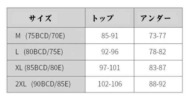 | サイズ | 34/75BCD 36/80BCD 38/85BCD 40/90BCD 42/95BCD |