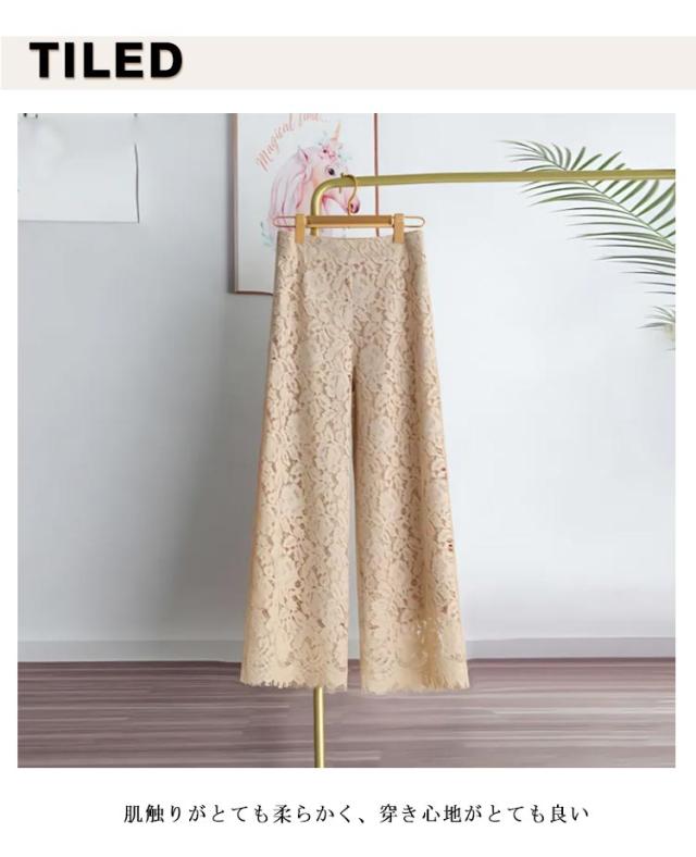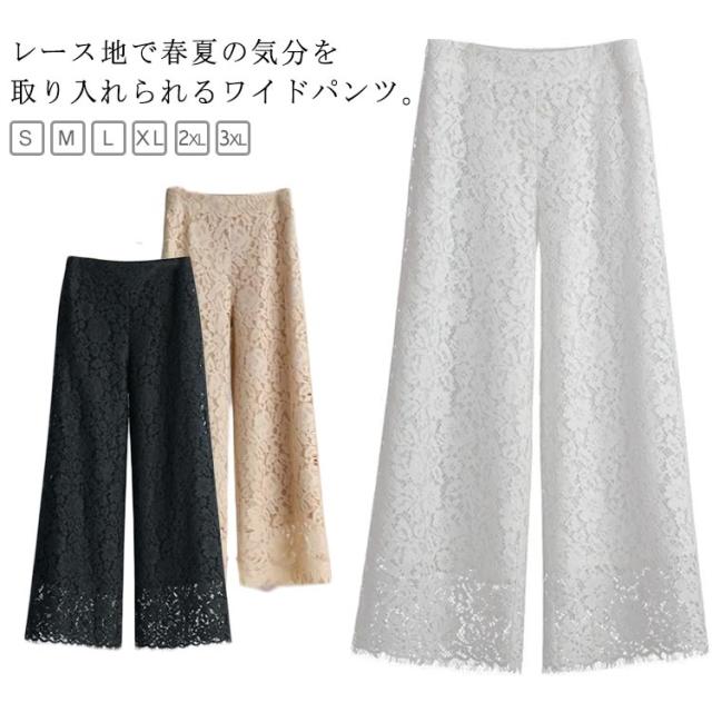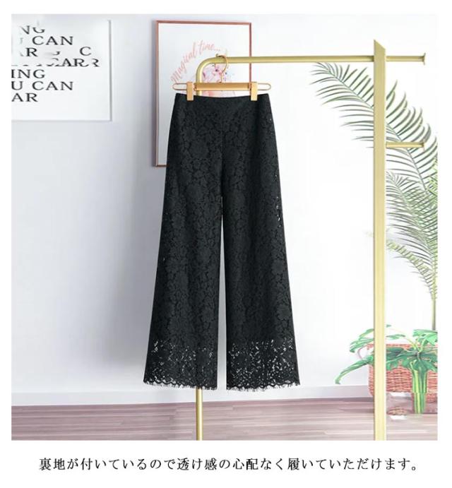 ワイドパンツ 体型カバー 透かしレース 長ズボン ロングパンツ ワイドパンツ 花柄レース 総レース 総レースパンツ レディース ボトムス ゆったり 大きいサイズ 春服 春 ペチパンツ 夏 きれいめ エレガント 20代 30代 40代 50代 かわいい おしゃれ