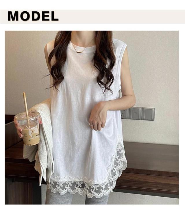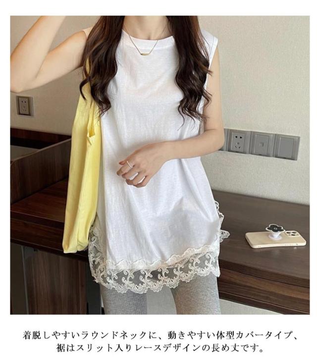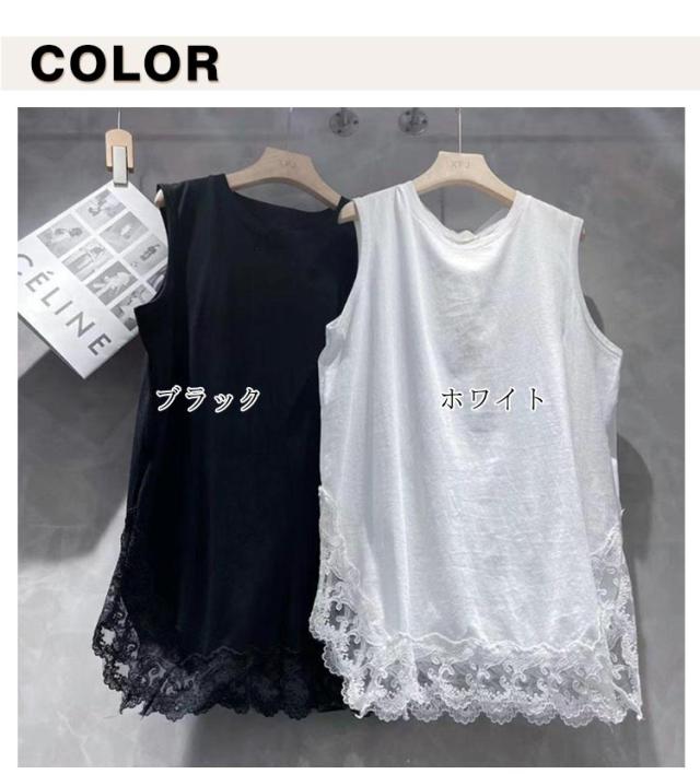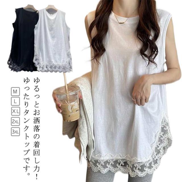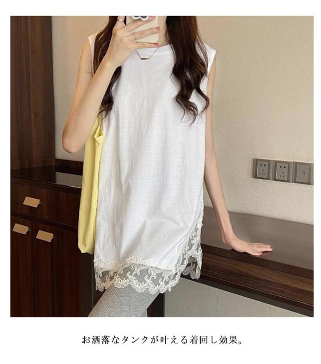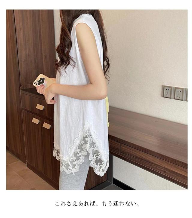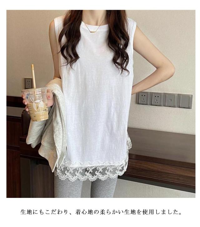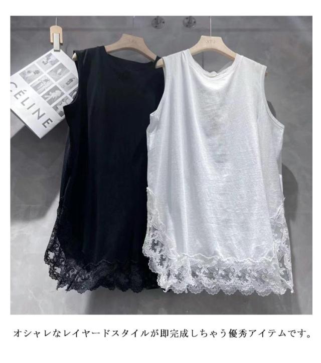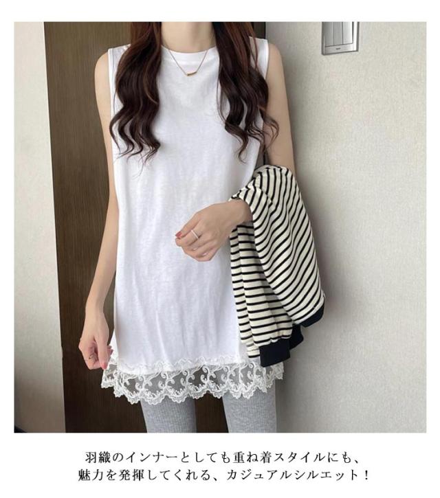 Tシャツ タンクトップ レディース タンクトップ シンプル レイヤードタンクトップ レース裾 カットソー 重ね着 無地 袖なし 大きいサイズ インナー トップス おしゃれ カジュアル 秋 体型カバー ロングタンクトップ 春 夏 春夏 きれいめ かわいい 旅行 通学