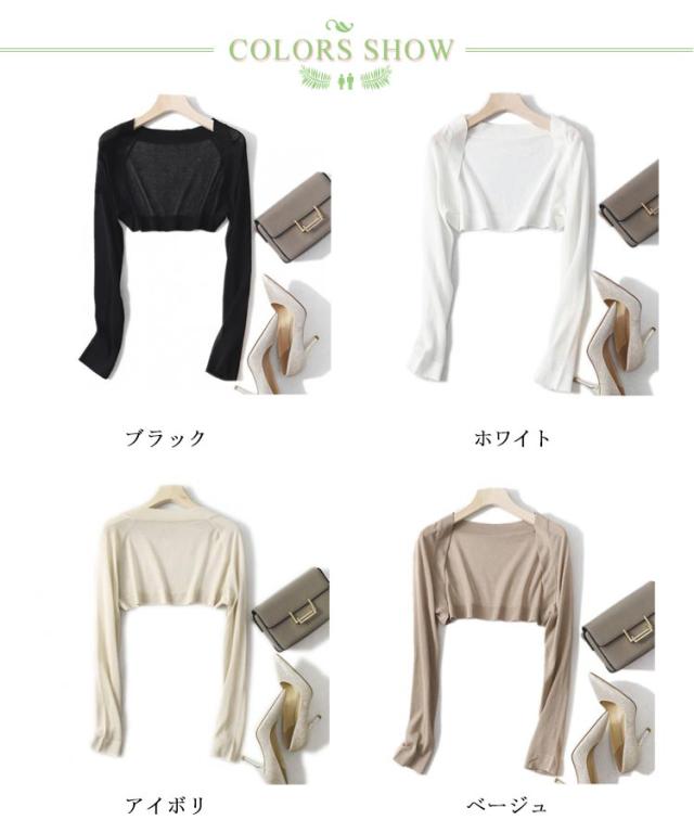 ロングスリーブ 春 ボレロ サマーカーディガン 短め 長袖 ショート丈 カーディガン シンプル 薄手 全4色 無地 無地カーディガン 秋 夏 レディース 羽織り 細見え 紫外線 対策 カジュアル 体型カバー 長袖 送料無料 全4色 ロングスリーブ 夏 UV 紫外線対策