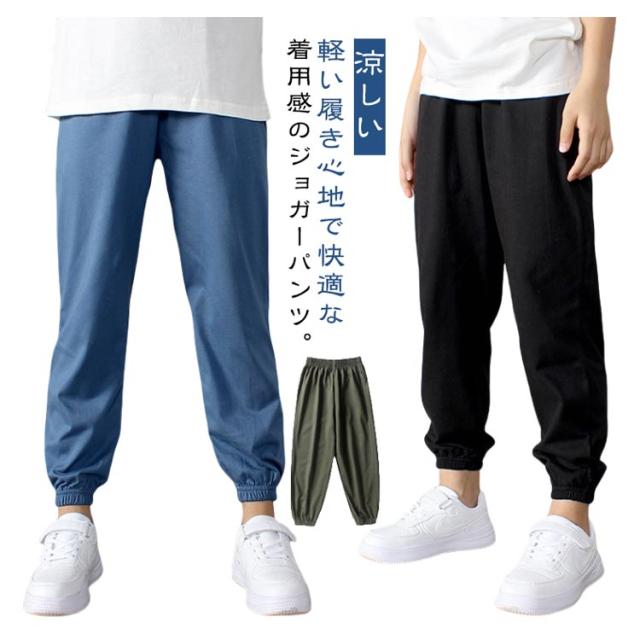 子供服 キャンプ ジョガーパンツ キッズ服 長ズボン パンツ サマーパンツ 薄手 裾ゴム パンツ 女の子 男女兼用 ユニセックス 通気吸汗 男の子 ウエストゴム 通園 通学 子供ズボン 虫刺さ防止 無地