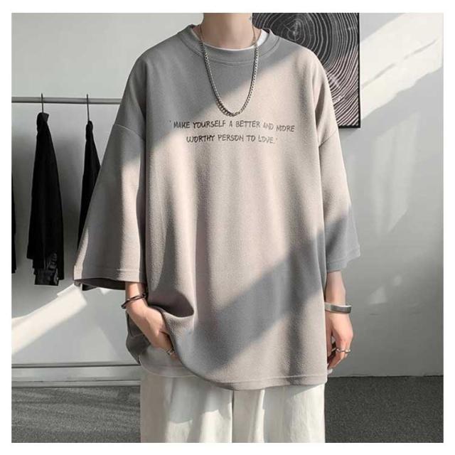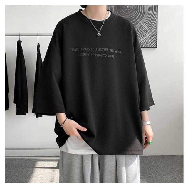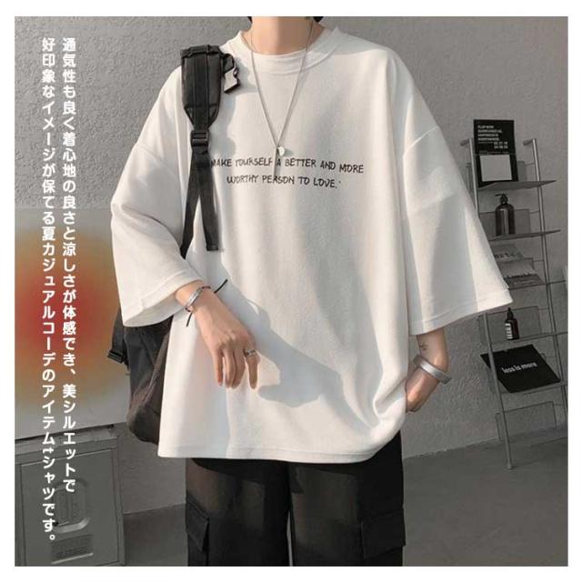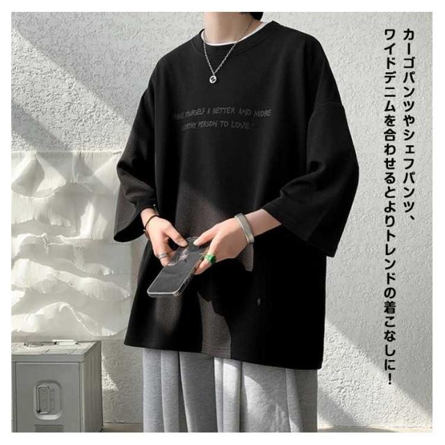 tシャツ 七分袖 おしゃれ 夏服 トップス 男女兼用 涼しい ビッグT クルーネック メンズ かっこいい服 ビッグシルエット カットソー カジュアル ゆったり 柔らかい肌触り プリント 速乾 ジムtee 夏服 筋トレ 夏用 ウェア