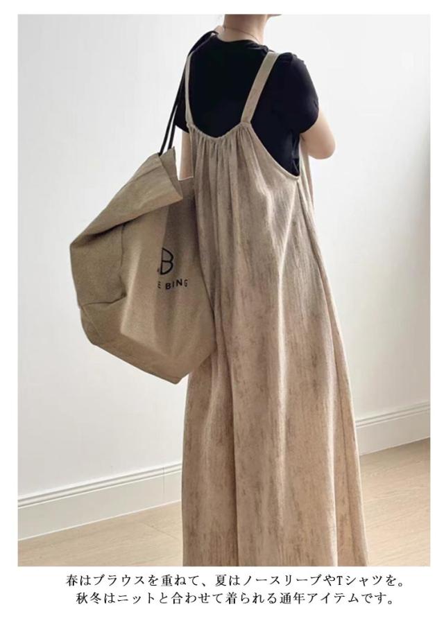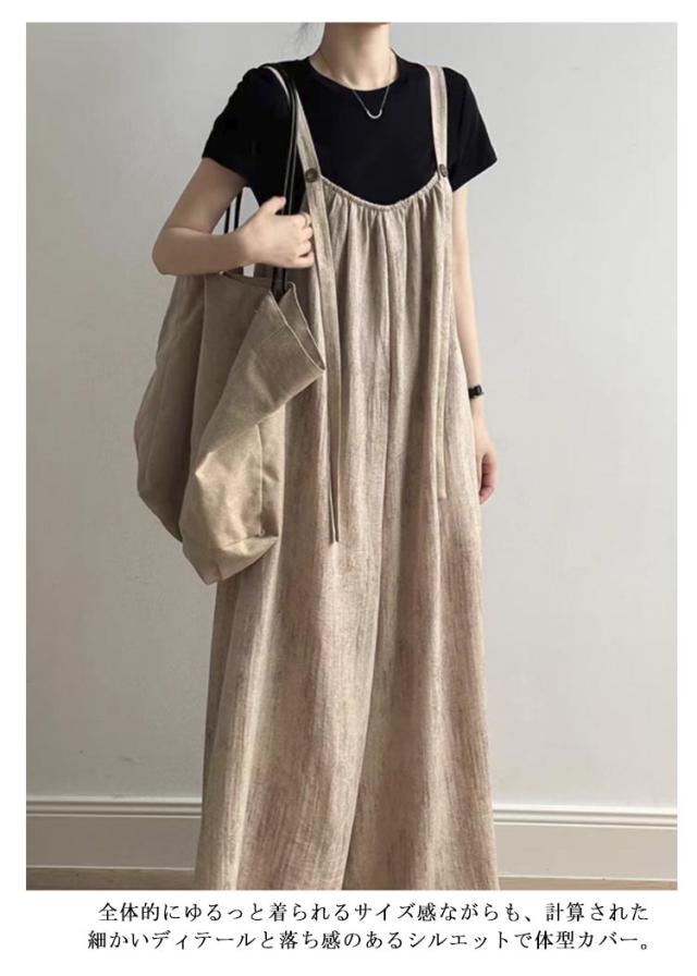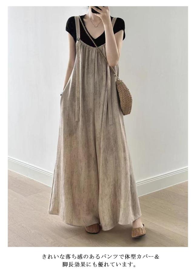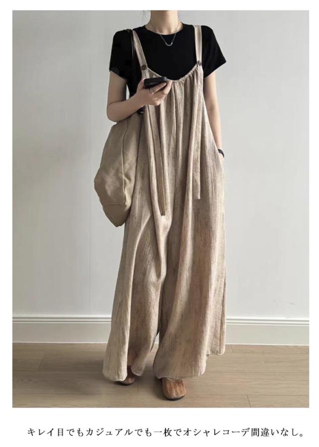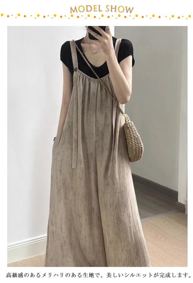 サロペット ワイドパンツ パンツ サロペ オールインワン 無地 オールインワン ノースリーブ オーバーオール つなぎ パンツ ボトムス ロング キャミワンピース 体型カバー ビッグシルエット ゆったり 無地