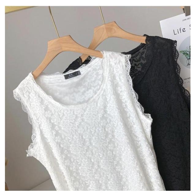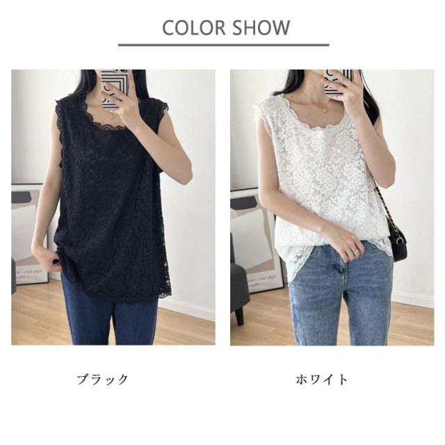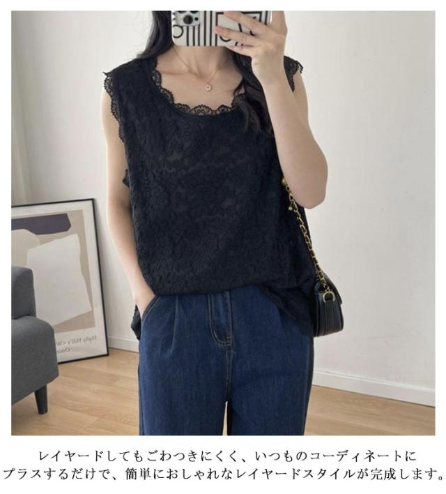 お尻が隠れる トップス タンクトップ レディース ノースリーブ 裾レース きれいめ レイヤード ロング丈 エレガント 重ね着 総レース 体型カバー Tシャツ かわいい インナー 可愛い 肌着 きれいめ 大きいサイズ 無地 ブラック ホワイト