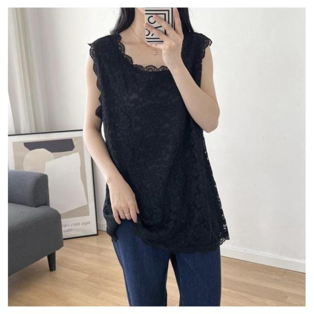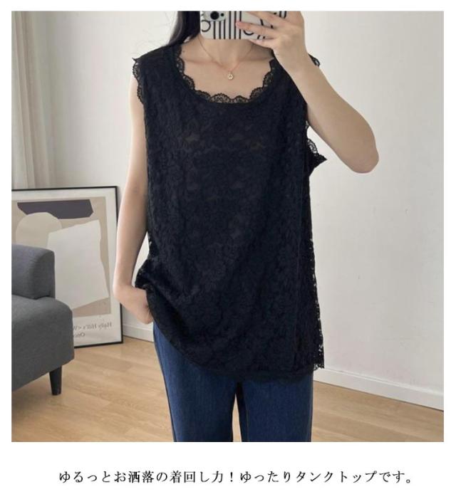 | M-3XL!総レースタンクトップ。 ゆるっとお洒落の着回し力!ゆったりタンクトップです。 レイヤードしてもごわつきにくく、いつものコーディネートにプラスするだけで、簡単におしゃれなレイヤードスタイルが完成します。 | |