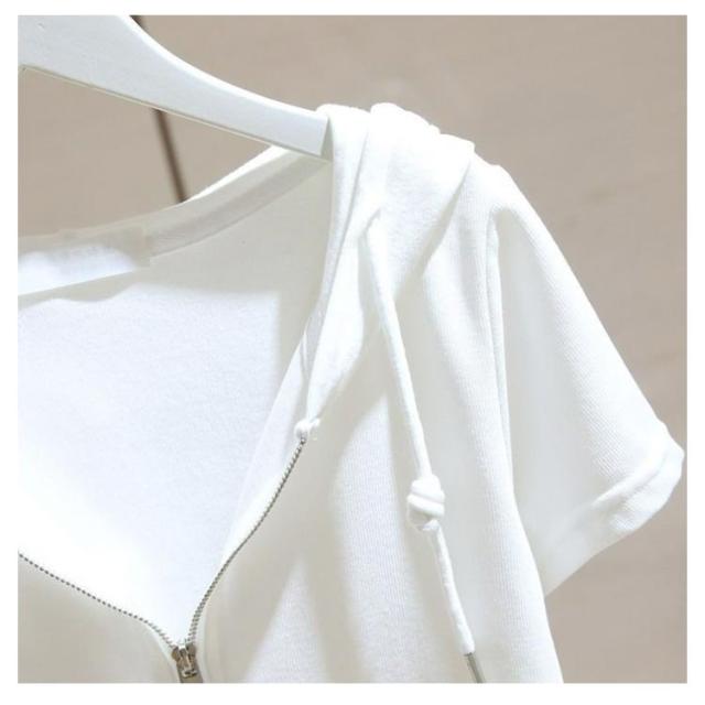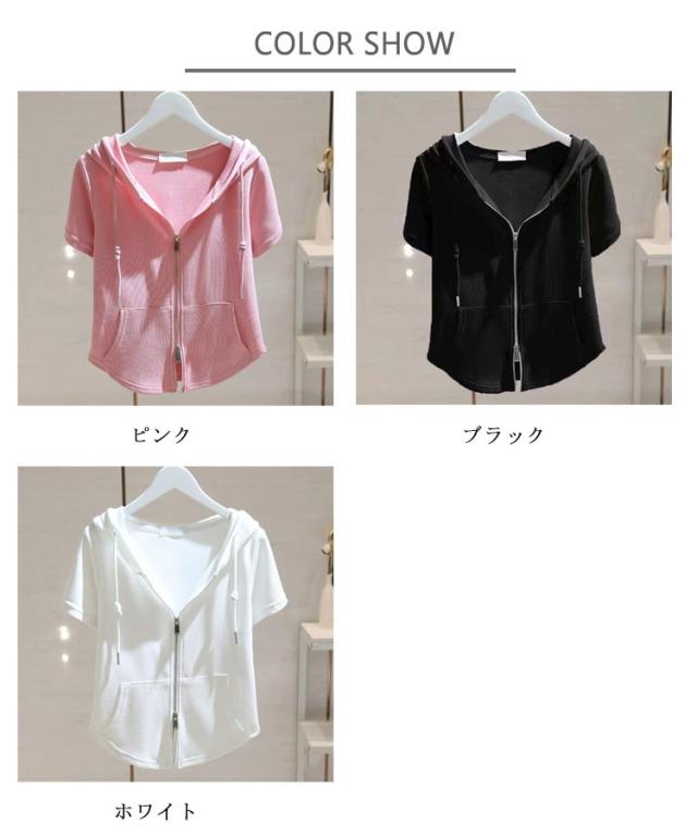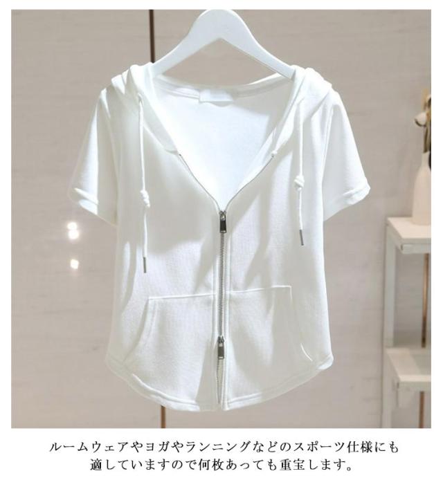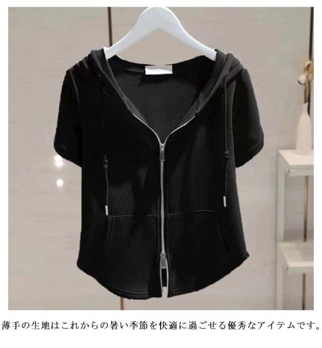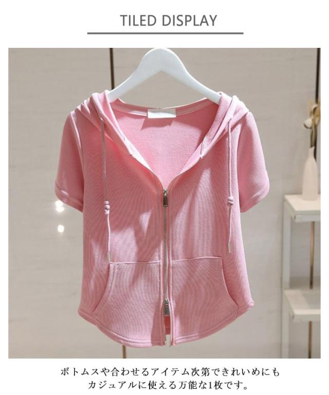 tシャツ レディース おしゃれ 薄手 無地 パーカー 半袖 半袖パーカー ジップアップ ジップパーカー 半袖tシャツ フード付きtシャツ 半袖カットソー ショート丈 羽織り 女性用 涼しい ジップアップ 夏パーカー カジュアル シンプル 春夏 大きいサイズ