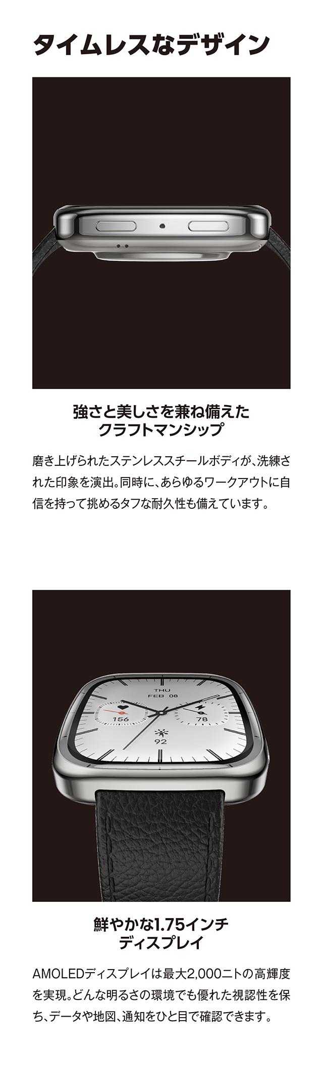 アマズフィット プレミアムバージョン 充電式クォーツ スマートウォッチ ブランド メンズ レディース Bluetooth 替えベルト 健康 Amazfit SP170075-C01 デジタル シルバー ブラック 黒