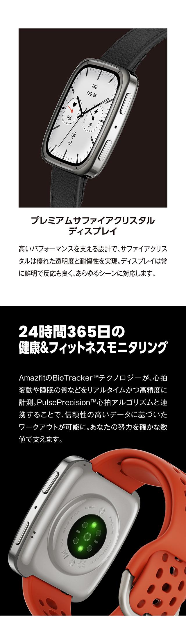 | 付属品 | 取扱説明書・amazfitオリジナルボックス 替えベルト付き(シリコン/レッド) |