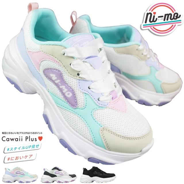 ニーモ NI-MO 厚底スニーカー NM J133 マルチ デニム ブラック 21cm〜23cm キッズ ジュニア 女の子 シューズ スニーカー ダッドスニーカー 子供靴 運動靴 通学靴 紐靴 ムーンスター MOONSTAR