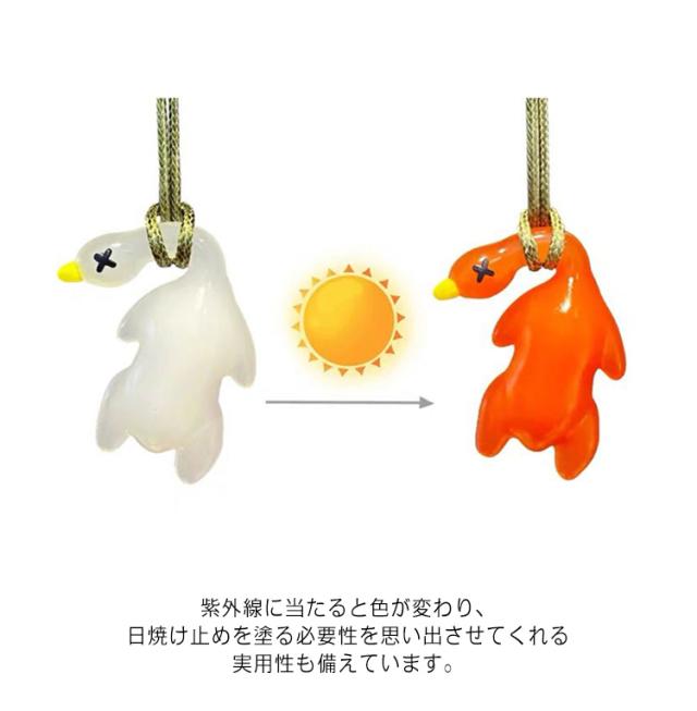 | 紫外線に反応して白→赤に変化!UVの強さを視覚でチェックできる「UVチェッカー機能付き北京ダックキーホルダー」日差しが強くなるこれからの季節にぴったり! 紫外線に当たると色が変わり、日焼け止めを塗る必要性を思い出させてくれる実用性も備えています。 車内装飾としてだけでなく、ギフトとしても人気のアイテムです。 ドライブや旅行、通勤や通学時のカーライフ、さらには部屋のウォールデコレーションなど、幅広いシーンで大人気です。 | |