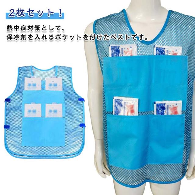 保冷ベスト アイスベスト 熱中症対策グッズ メッシュベスト 空調ベスト 保冷剤ポケット付き 涼しい 作業着 冷却ベスト 冷たい 保冷剤 冷却ベスト 2枚セット 涼感 暑さ対策 キャンプ アウトドア ひんやり スポーツ 作業服 冷却ベスト 外仕事 農作業