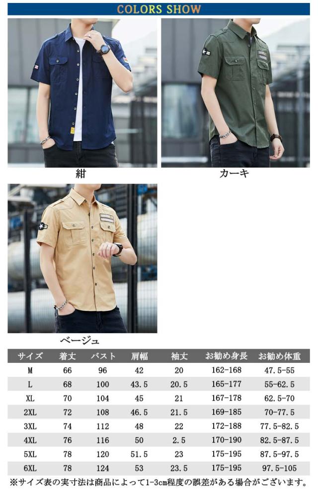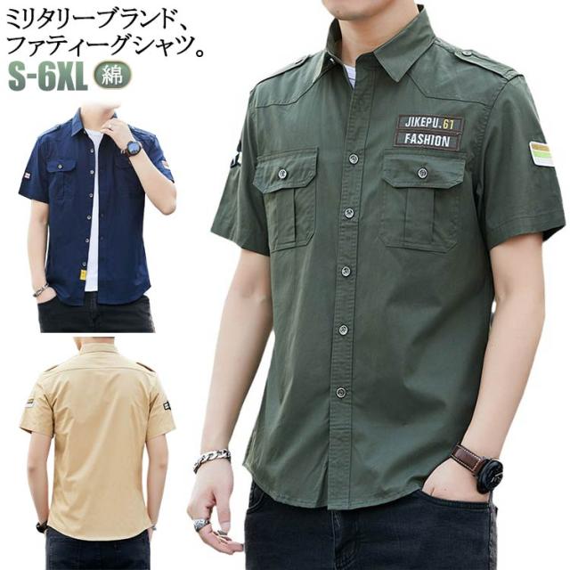 メンズ ショートスリーブ 半袖 ミリタリーシャツ アメカジ ファティーグカーキシャツ 綿 カジュアルシャツ シャツジャケット コットンシャツ ワークシャツ シャツ アーミーシャツ ミリシャツ トップス 胸ポケット付き 無地 春服 夏 夏服