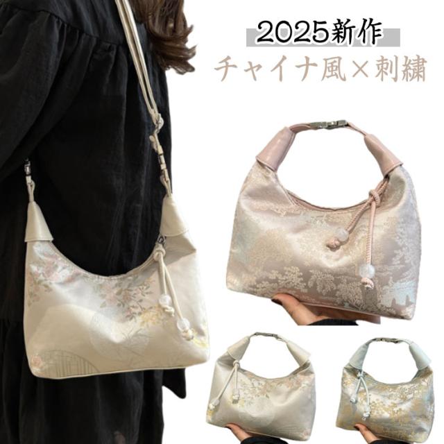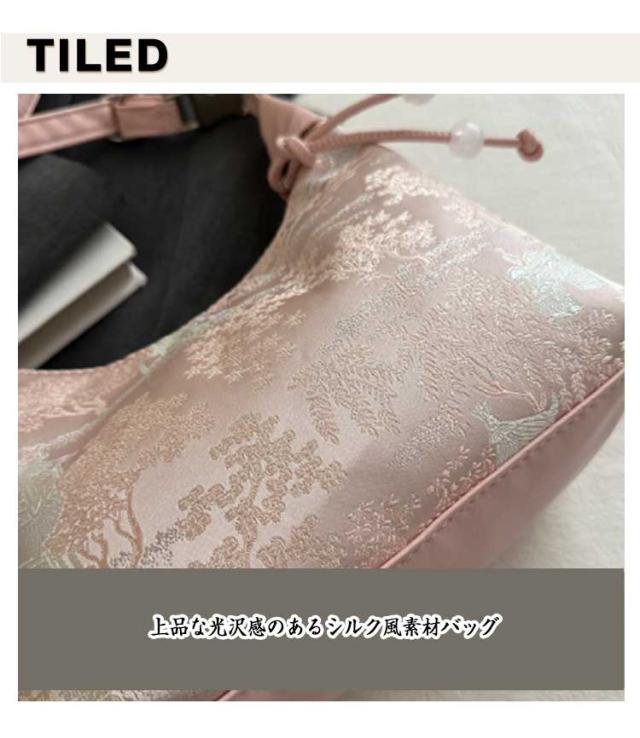 ハンドバッグ シルク風 手提げ ショルダーバッグ チャイナ風 バッグ レディース 2WAY 斜めがけ 小物入れ 大容量 ハンドバッグ 浴衣バッグ カバン エレガント おしゃれ 大人可愛い 和装 花火大会
