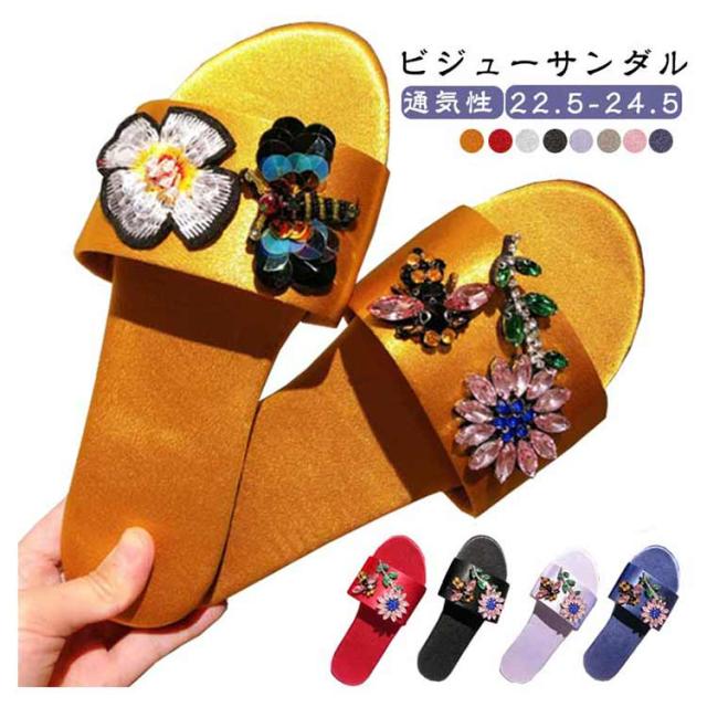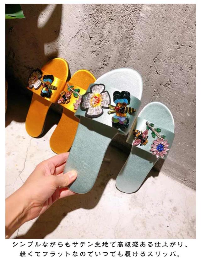 ビーチサンダル 来客 ビジューサンダル サテン スリッパ レディース シルクタッチ ルームスリッパ ビジューサンダル 可愛い コーデ 無地 ぺたんこ ルームシューズ オフィス 部屋 室内履き 部屋履き ソフト イエロー レッド グリーン ブラック パープル グレー ピンク