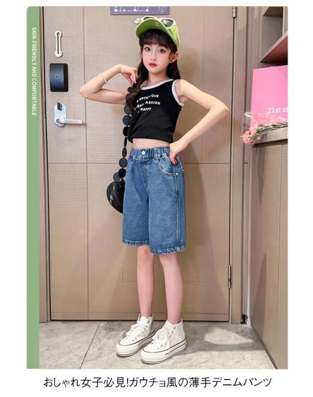 女の子 ゆったり ショートパンツ ガウチョパンツ ジーンズ 女の子 デニムパンツ 140cm ボトムス 子供服 夏用 五分丈 おしゃれ 120cm 130cm 薄手 150cm 160cm 170cm