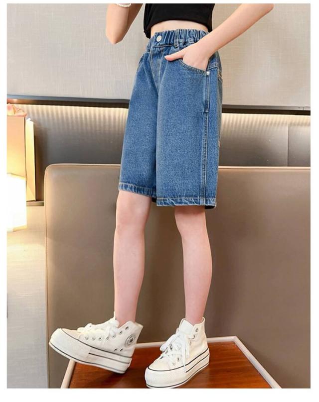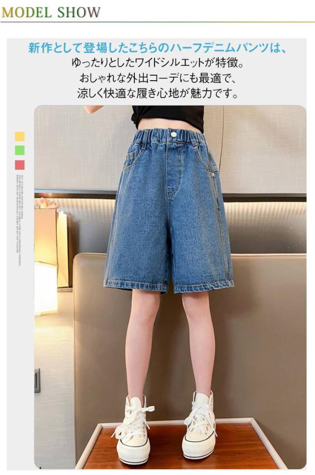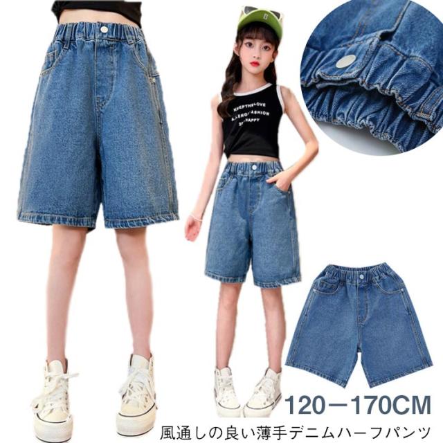 五分丈 女の子 ゆったり 女の子 デニムパンツ キッズ ジーンズ 薄手 子供服 ガウチョパンツ ボトムス 夏用 おしゃれ 120cm 130cm 140cm 150cm 160cm 170cm