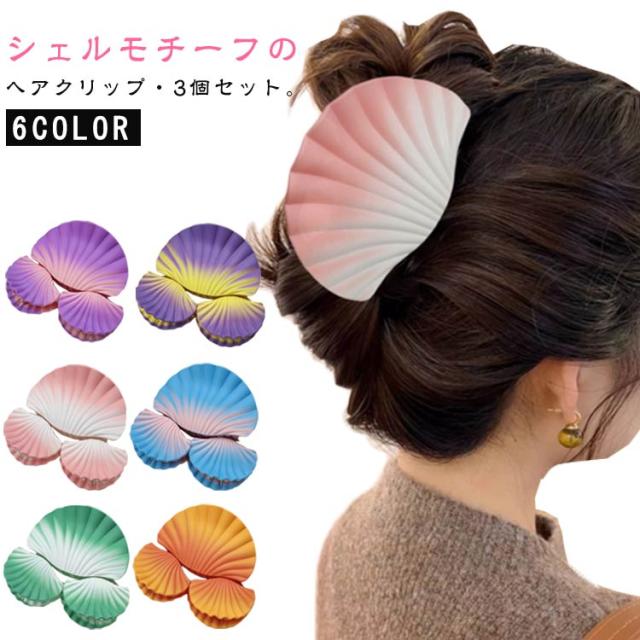 シェル ヘアクリップ ヘアアクセ バンスクリップ 3点セット ヘアーアクセサリー まとめ髪 ハーフアップ 貝殻 ヘアアレンジ 前髪クリップ シンプル おしゃれ トレンド レディース 女性