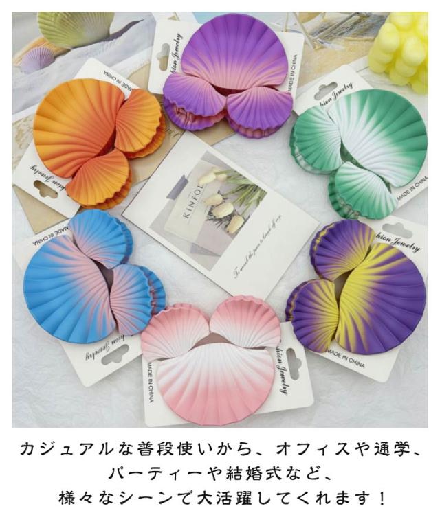 | シェルモチーフのヘアクリップ・3個セット。 海をイメージさせるおしゃれなデザイン♪ 前髪やサイドを留めたり、まとめ髪のアクセントとして◎ しっかり髪の毛をつかむホールド力があるので毛量が多い方でも大丈夫! カジュアルな普段使いから、オフィスや通学、パーティーや結婚式など、様々なシーンで大活躍してくれます! | |