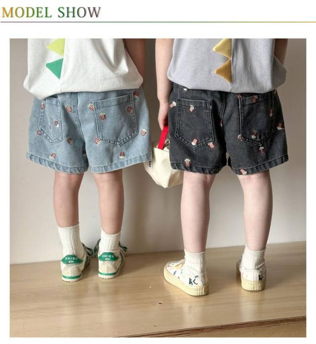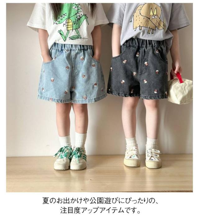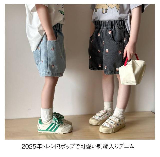 男の子 デニムパンツ ショートパンツ 刺繍 デニムパンツ 女の子 キッズ 半ズボン 夏服 子供服 ベビー服 ボトムス 80cm 90cm 100cm 110cm 120cm 130cm 140cm 150cm